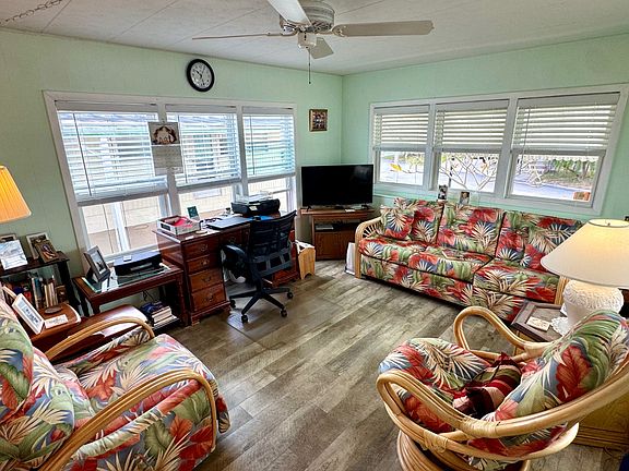 Discover the charm of this clean and tidy 1968 single-wide, a beautifully maintained 1-bedroom, 1-bath home offered turnkey and move-in ready. The home has been thoughtfully updated over the years, including improvements to the roof-over, vapor barrier, plumbing, flooring, kitchen and bath, water heater, windows, and AC-providing comfort and peace of mind. Inside, you'll enjoy tasteful, inviting décor that makes this home feel warm from the moment you step in. The layout is efficient and easy to maintain-perfect for a single person or snowbirds seeking a simple, comfortable seasonal getaway. Outside, the home features a two-car-length carport for plenty of covered parking, plus charming garden boxes ready for flowers or herbs. This lovingly cared-for home offers effortless living in a peaceful community-just bring your suitcase and start enjoying your Florida lifestyle. Make sure and ask to see our full VIDEO TOUR! This home is centrally located in Bradenton, just a few miles north of Sarasota Bradenton International Airport and about 15 minutes from the beautiful Gulf Coast beaches. Village on the Greens is a gated, 55+, pet-free community that offers a welcoming and active lifestyle. Residents enjoy a variety of amenities, including a swimming pool, shuffleboard courts, a library, a fitness center, a clubhouse, and a full calendar of social activities. Exciting amenity upgrades are coming soon, including decorative fencing and landscaping, two new pickleball courts, two bocce ball courts, a brand-new zero-entry pool, a putting green, an updated shuffleboard area, an electric fire pit with seating, an outdoor grill area, new benches and bike racks, and a scenic walking path. The total fixed monthly cost is $1,247.59, which includes lot rent of $1,115, a community insurance assessment of $11.56, trash service at $35.29, common area electric at $5.74, and Spectrum bulk cable and internet at $80. Lawn care is available for $36 per month, and water and sewer are individually metered. Community approval and a background check are required, and subleasing is not permitted. Florida Life Mobile Home Sales, Inc. does not provide guarantees on the accuracy of this information or the condition of any properties. It is recommended that buyers conduct their own independent research and inspections. AGENT MUST SHOW BY APPOINTMENT 508 44th Ave E Lot D36 (Park Street 5th Ave E) Bradenton, Florida 34203