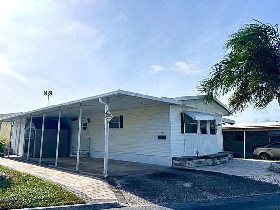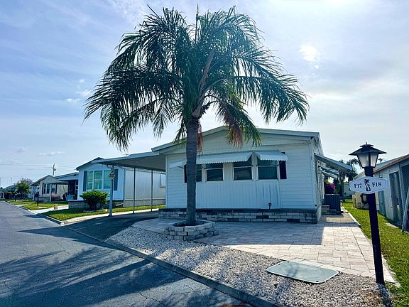 This 1981 manufactured home offers practical comfort and easy living. It features 2 bedrooms and 2 full bathrooms, including a primary suite with a walk-in closet and private ensuite bath. Both bathrooms have shower/tub enclosures. Vaulted ceilings run throughout, creating an open, airy feel. Flooring includes a mix of vinyl plank and newer carpet in soft driftwood tones-both in good condition and needing no updates. The interior paneling is a light blonde color that can easily be painted to suit your style. Outside, you'll find carport parking for two vehicles, a 7x7 storage shed, and a larger 8x10 shed with laundry. The lot is finished with pavers and crushed stone for a clean, low-maintenance look-no grass to mow means less work and lower monthly costs. A new A/C system with heat pump was installed in 2024 for year-round comfort. This home is being sold furnished and turnkey-move right in and make it your own. ASK TO SEE OUR VIDEO HOME TOUR! This home is centrally located in Bradenton, just a few miles north of Sarasota Bradenton International Airport and about 15 minutes from the beautiful Gulf Coast beaches. Village on the Greens is a gated, 55+, pet-free community that offers a welcoming and active lifestyle. Residents enjoy a variety of amenities, including a swimming pool, shuffleboard courts, a library, a fitness center, a clubhouse, and a full calendar of social activities. Exciting amenity upgrades are coming soon, including decorative fencing and landscaping, two new pickleball courts, two bocce ball courts, a brand-new zero-entry pool, a putting green, an updated shuffleboard area, an electric fire pit with seating, an outdoor grill area, new benches and bike racks, and a scenic walking path. The total fixed monthly cost is$1,247.59, which includes lot rent of $1,115, a community insurance assessment of $11.56, trash service at $35.29, common area electric at $5.74, and Spectrum bulk cable and internet at $80. Lawn care is available for $36 per month, and water and sewer are individually metered. Community approval and a background check are required, and subleasing is not permitted. Florida Life Mobile Home Sales, Inc. does not provide guarantees on the accuracy of this information or the condition of any properties. It is recommended that buyers conduct their own independent research and inspections. AGENT MUST SHOW BY APPOINTMENT 508 44th Ave E Lot F-17 (Park street name - 6th Ave E) Bradenton, FL 34203