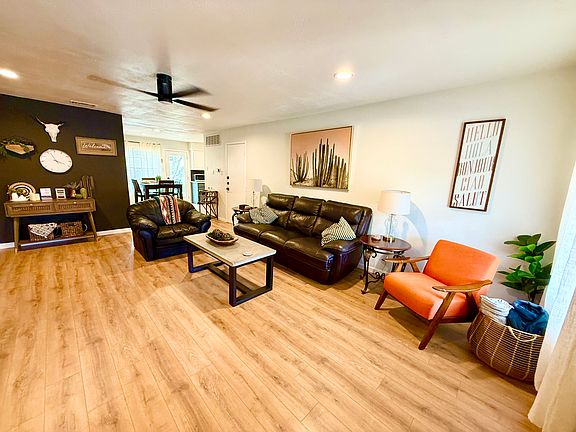 Single story home. This unique place has a style all its own. Recently renovated. Cozy and spacious, plus great location to several dining and shopping areas! We offer a peaceful place for all, whether you are traveling alone, for work, or with family! Single floor living.