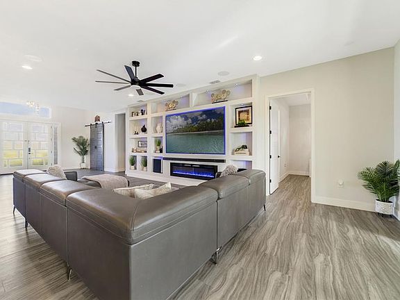 Welcome to modern living in the sought-after gated community of Water Ridge in Auburndale, where every home is CUSTOM CRAFTED and every view is a postcard! This 2023 BUILT single story **4 bedroom // 3 full bath // 2 offices + theater room** showstopper sits on a large .27 ACRE LOT with gorgeous WATER VIEWS and is packed with modern UPGRADES, smart tech, and access to RESORT STYLE AMENITIES. Step inside and fall in love with the bright OPEN FLOOR PLAN, high ceilings, and LUXURY VINYL PLANK flooring throughout. In addition to four generous bedrooms, this home also delivers two dedicated office spaces, a TOP-OF-THE-LINE THEATER ROOM with upgraded equipment (all installed in 2023), and three full baths – perfectly designed for everyday comfort and elevated entertaining. At the heart of the home, the home chef’s dream kitchen stuns with a massive 13’ QUARTZ ISLAND with a WATERFALL EDGE, built-in wall oven, stylish solid wood cabinetry topped with crown molding, an abundance of drawer and cabinet storage, and sleek pending lighting. The SAMSUNG FAMILY HUB REFRIGERATOR is a functional showpiece and the TP-Link Deco Whole House Mesh System (5 nodes) keeps everything connected. The living room impresses with a BUILT-IN MEDIA WALL featuring 100" TV with Surround Sound System (included with sale), a dramatic 72” ELECTRIC FIREPLACE (2024), and a modern fan, all anchored by a wall of sliding glass doors that open to the COVERED LANAI and FULLY FENCED backyard beyond. The SPLIT BEDROOM layout provides privacy, while your PRIMARY SUITE delivers fresh, modern vibes with luxurious finishes and a spacious en-suite retreat. Residents should know, Water Ridge isn’t just a neighborhood – it is a lifestyle! You will enjoy access to 3 LAKES, 5 GATED ENTRANCES, 3 BOAT DOCKS, boat trailer storage, and 3 POOLS (two leisure, one lap). The clubhouse, fitness center, men’s and women’s saunas, sports courts, and pickleball and tennis facilities make every day feel like a vacation. Plus, with onsite HOA management, the community is as well maintained as it is beautiful. **BONUS: ASK US ABOUT THE ASSUMABLE MORTGAGE!** Whether you are seeking privacy, luxury, or an active lakefront lifestyle, Water Ridge offers it all just minutes from major highways and central to everything in Polk County. Call today to schedule a tour!