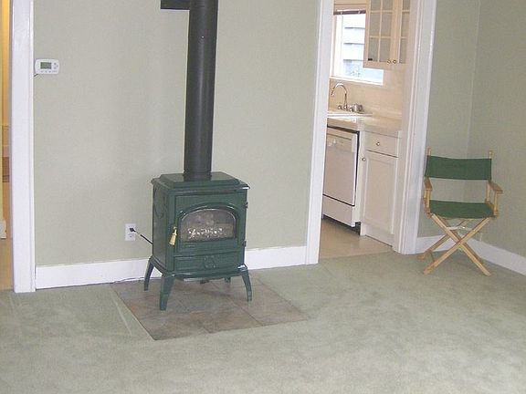 - Fireplace features: wood stove