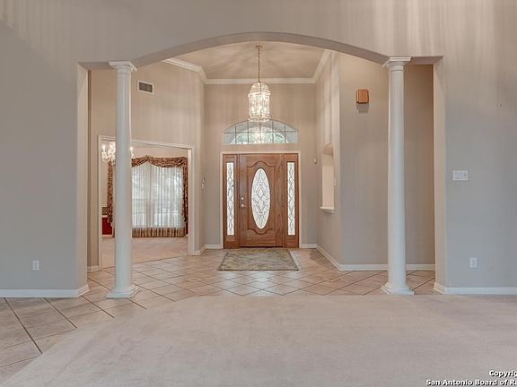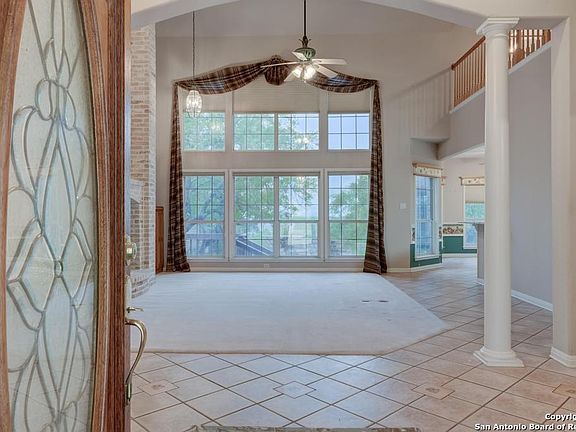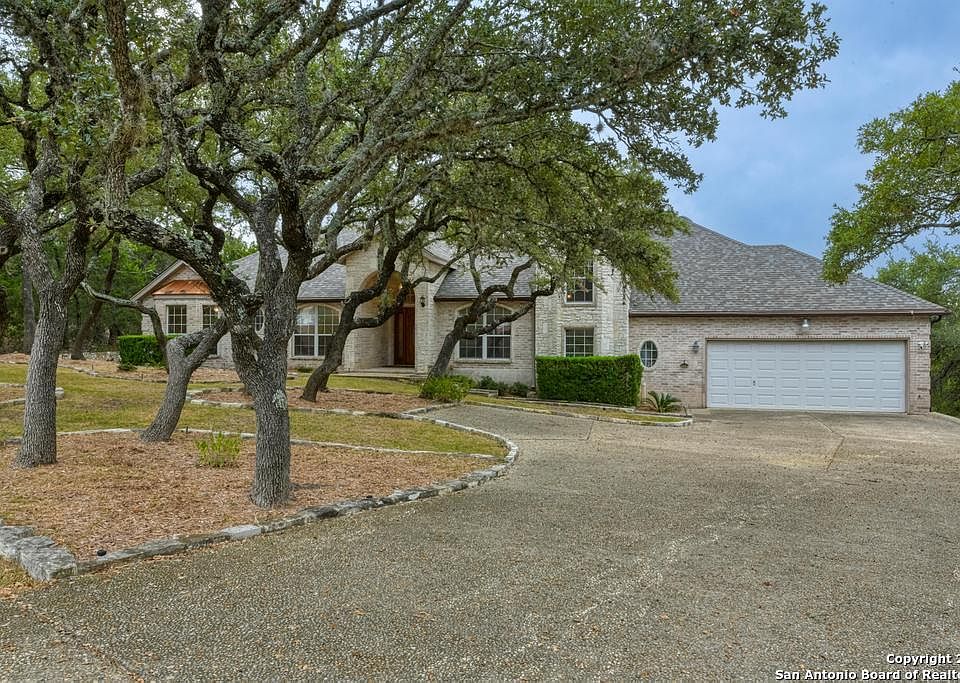 Stunning executive home with all the bells and whistles has been loved and well maintained. This beauty sits on more than a half an acre of Texas Heaven! Immaculate curb appeal to welcome you home in style with manicured yard and precision landscaping. Grand entry area opens to graceful architecture, dual pillars, soaring ceilings, and a beautiful view through the large windows that provide abundant natural light. Entertainer's Delight! The main Living area features an impressive fireplace with brick from floor to ceiling. The convenient built-in wood shelves demonstrate true craftsman's quality. Formal Dining area includes gorgeous chandelier sure to captivate your guests. Extraordinary Kitchen has double ovens, incredible storage and counter space area, and a huge walk-in pantry, with a lift that allows you to easily get your groceries from the garage to the pantry! The informal dining area has bay windows to enjoy causal meals with a view! All bedrooms downstairs. Primary Suite has a private outside exit to its own exclusive deck. Upstairs features a massive game room overlooking the main living area, with a wet bar and sitting area to enjoy starry night skies or amazing March Madness and Super Bowl parties! Two car garage plus ample uncovered parking. Breathtaking backyard with a large wood deck for hours of outside fun! Solar panels are functional! Luxurious county living, yet close to all the major city conveniences off 281 and 1604, like shopping, restaurants, entertainment and more! Neighborhood amenities include 9 hole golf course, tennis, pool and clubhouse. Superb Comal ISD with neighborhood elementary school and Pieper Ranch MS and PIEPER HS! Tons of storage under stairs. This is a must to see!