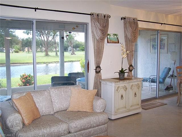 Sit on your lanai and this is your LONG WATER VIEW PLUS a golf course view! When you want a water view but don't want to join a golf club, these are rare but this townhouse offers BOTH in Ironwood. IMPECCABLE condition through out.Plus large tile on diagonal throughout, carpet upstairs, additional second air conditioner was added in 2016 for the upstairs. New heavy gauge screens, door handles,locks,new half bath on main floor. Master bath has new tile and glass shower. Plenty of sitting room in Master and a large bonus room that currently is a bedroom with two twin beds. Front and back screened lanais (front is brick pavers) Dining room & great room have access to outdoor screened lanai that runs the length of the house has storm shutters. High end GE washer dryer pair, built in jewelry/gun safe, window treatments, custom built display wall shelf, floral arrangements stay as well. Small enclave has private swimming pool with baths just a stroll away. Just minutes to the beautiful Gulf of Mexico, shopping on 5th Ave., dining, airport & I-75. Some areas leave room for you to make the home exactly like you want but one thing that you can't and won't want to change is this VIEW!