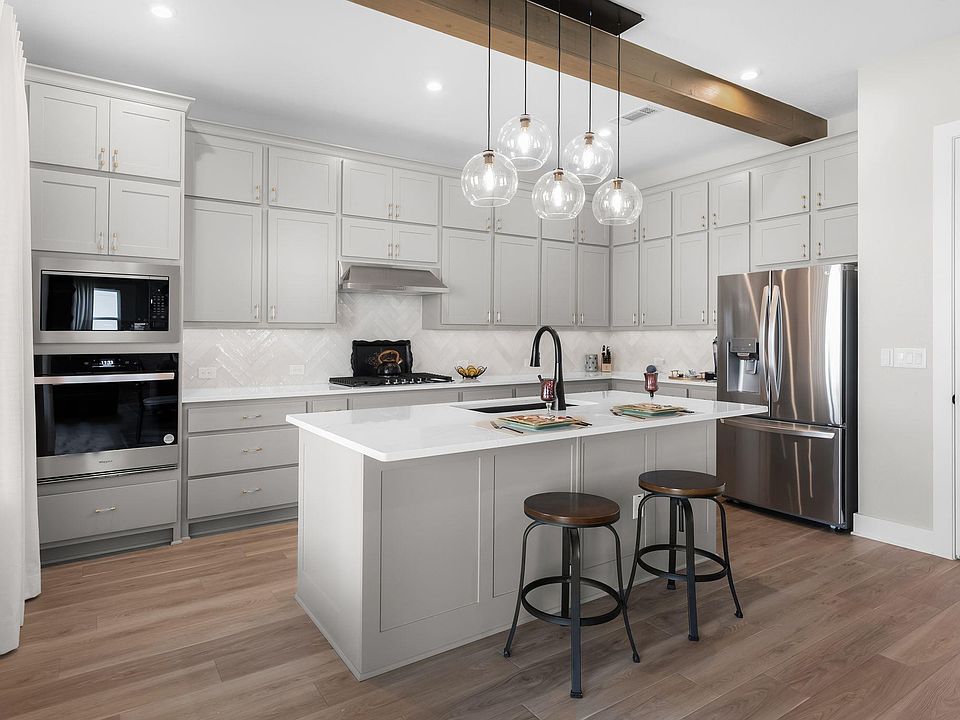 Stunning Home for Sale in Award Winning Regency at Santa Rita Ranch 55+ Community Blending modern elegance with functional design, this beautiful single story home offers an inviting open concept layout, soaring wood beamed ceilings, natural stone accents, and countless upgrades throughout. As you enter through the front door, a dramatic floor to ceiling natural stone wall leads from the foyer into the living room, where a striking fireplace wrapped in natural stone from floor to ceiling creates a warm and welcoming centerpiece. The chef’s kitchen is a showstopper, featuring quartz countertops, a large island with seating, stainless steel appliances, and custom cabinetry. Bathrooms, the kitchen, and laundry all showcase custom tile work, adding an elevated designer touch to every corner of the home. The primary suite offers a spa like retreat with a stand alone soaking tub, dual vanities, a walk in shower, framed mirror, and an expansive custom closet. Additional rooms are generously sized, and the versatile office/flex space provides options for work or hobbies. Step outside to the covered patio overlooking a beautifully landscaped yard, with no neighbors directly behind, ideal for entertaining or quiet enjoyment. As part of the Santa Rita Ranch master planned community, residents enjoy world class amenities, including access to the exclusive Regency Amenity Center complete with a resort style pool, 9 pickleball courts, bocce ball, a work out center, fishing ponds, fire pits, and a clubhouse. You’ll also have full access to Santa Rita Ranch amenities, with miles of trails, fitness centers, and social events designed to foster an active lifestyle. This is more than a home it’s a lifestyle.