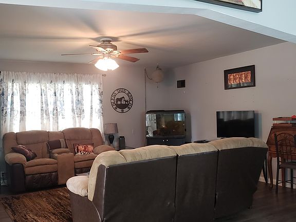 Welcome to small town living! This affordable, spacious 4 bedroom is a perfect starter home for the growing family. Main floor offers a large living room, formal dining area, cute county kitchen with all the appliances and pantry cabinet that stay. 2 bedrooms & full bath. Two large bedrooms upstairs & the lower level offers a family room , non-conforming bedroom & 3/4 bath. Basement is a walk out. 2 car detached garage, & 2 good sized storage sheds. Huge flat back yard with no neighbors behind. Home is being sold as is., seller will make no repairs. AMA