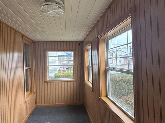 You are greeted by a nice large closed in sun porch in the front of the home.