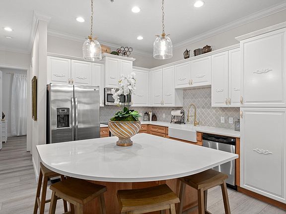 Fully renovated and professionally designed in 2022, this elegant French-inspired townhome brings timeless European charm just steps from the white sand beaches and attractions of Panama City Beach. The top floor features a master suite with Gulf-view balcony, spa-like ensuite with soaking tub, and custom tile. The main level offers an open living area filled with natural light, a modern kitchen with stainless appliances, and seamless flow for entertaining. The lower level provides a guest suite with ensuite bath and garage access. Residents enjoy a community pool, prime location, and turnkey ownership with furnishings included. Ideal as a second home with short-term rentals allowed to offset expenses. HOA fees include base-value property insurance. Buyer to verify all info.