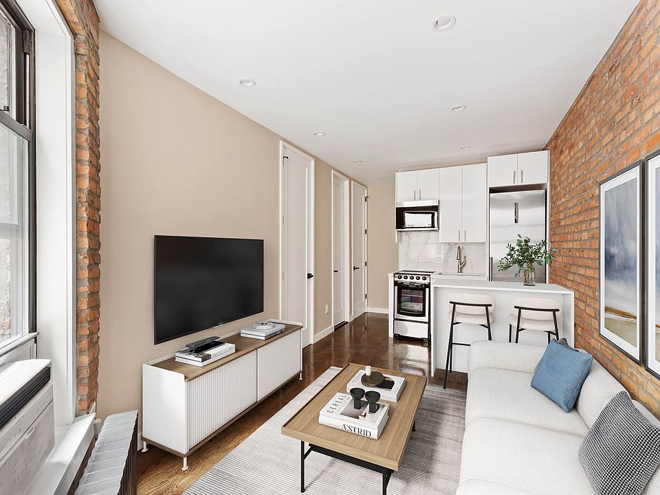 Modern convenienceTimeless charmClassic exposed brickBrand new gut renovationStainless steel appliancesGenerous cabinet spaceOpen kitchen