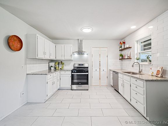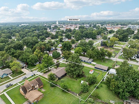 Longing for a lovely home, steps away to coffeehouses, restaurants & local shops? Would you love to stroll to the Farmer’s Market and Main Street Festivals? Welcome to the Twin Oaks home at 508 E Detroit Ave. Enjoy a wonderful sense of community by choosing to live in Broken Arrow’s thriving Rose District! Freshly re-modeled, this is an open concept, one-level home. The circle drive holds 4 cars. The Extra Large Lot & A Half provides plenty of land to build a new garage or carport. The Sellers have lovingly re-stored this home to be better than ever! 2025: Complete conversion of garage to all new living space with doors into laundry room. A vestibule leads from living room to the new bedroom door. There is a new built-in closet and two added windows. A total of 10 new windows have been installed. New HVAC installed. New full interior and exterior paint. Cedarwood posts & railing added to front porch, back patio wood deck installed, new gate on privacy fence. 2024: Full complete re-model or kitchen and both bathrooms: all appliances, tile floors, vanities, tub, showers, all new vinyl planking. 2023: New hot water heater. 2020: New Roof. The large, flat backyard features a covered patio, open deck, full privacy fence and shed. Beautiful towering trees around the property are priceless.