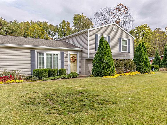 Wonderfully Maintained 3-BR, 3-Bath Tri-Level on 1.03 Acres with Expansive 20x40 Garage and Workshop. This beautifully kept tri-level home is set on a spacious 1.03-acre lot with endless possibilities, including the potential to add a pole barn, large garden, or other custom features to suit your needs. The main level showcases stunning cherry-engineered hardwood floors, and the kitchen has been expertly renovated with Fehrenbacher cherry cabinets, soft-close deep drawers, a trash and recycle drawer, quartz countertops, stainless steel appliances, a spice drawer, and much more! Upstairs, you'll find 3 BRs, including a master suite with a private full bath. A 2nd full bath serves bedrooms 2 and 3, and a walk-in storage closet provides ample space for linens and extras. The lower level is fully finished, offering a spacious family room complete with a wall of built-in bookshelves, plenty of natural light from large windows, and elegant crown molding. The large laundry/utility room impresses with additional storage closets, a full bath with a step-in shower, and custom wood cabinets, along with a desk area perfect for work or hobbies. The garage is a standout feature, easily accommodating two cars , and in the back, you'll find an impressive 15.7x19.5 workshop space, perfect for gardening, woodworking, or other projects, with double doors leading to the backyard. Additionally, there’s a 20x13 covered patio with a ceiling fan—ideal for relaxing or outdoor projects. The landscaping around the property is truly stunning, featuring over 1,000 tulip bulbs, azaleas, and more. A circular driveway provides easy access to Mill Road! There is no HOA, so you have a great opportunity to make it your own!