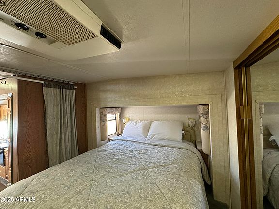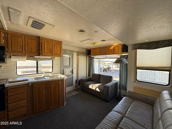 OWN YOUR LAND in Caliente Casa de Sol 55+ Community! This lot includes a 1999 Alpenlite Augusta 33ft 5th Wheel located on Sunny Side of Street, featuring open layout w/two slide-outs & numerous recent upgrades. Roof has been resealed, & trailer now boasts brand-new power converter, new toilet, new bathroom fan, & vent cover. Bedrm equipped w/queen-sized bed & brand-new mattress, fully functioning A/C unit to keep the space comfortable. Plumbing system upgraded w/hard-piped connections to the septic & gray water systems, ensuring long-term convenience. Addt'l features incl lrg storage compartment under front of trailer & an on-site shed for extra storage. Property conveniently located near Pool #1 & laundry rm, offering easy access to the community's amenities. Caliente Casa de Sol offers many amenities, such as; 4-pools, 4-spas, Pickleball, cornhole, shuffle board, horseshoes, dog park, club house, woodworking, ceramics, billiards, cards and more.