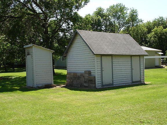 Large lot with 2 steel storage buildings and 10x14 shed. House is well kept 3 bedroom with electric heat, large kitchen and large master bedroom addition.