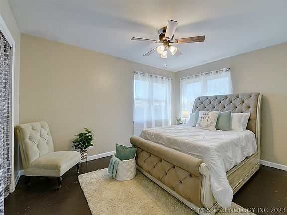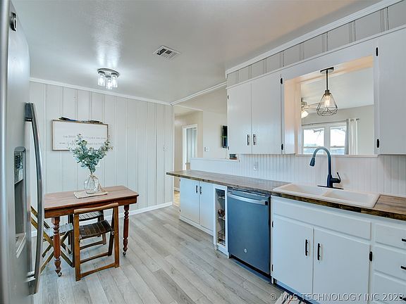 Updated and move-in ready starter home situated on a corner lot with two driveways, double carport, garden boxes, privacy fenced backyard, three sheds for storage, storm cellar, and a covered patio area perfect for entertaining. This home is in an established neighborhood with mature trees, plus a peach tree and is within walking distance of Marietta Schools. The home's interior has been updated with a new dishwasher, the roof was replaced on the house and carport in 2020, updated AC unit in 2020, and the ductwork was updated in 2022. The home is a three-bedroom but could be utilized as a four-bedroom home by adding a closet to the room that once was a converted garage. The home has original hardwood floors in two bedrooms and living room; laminate flooring in the kitchen and 2 bedrooms; kitchen updates include butcherblock counters, a stove, and a built-in microwave. *Refrigerator does not stay.