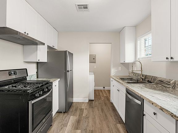 Fully remodeled downtown historic townhome! This 1BD/1BA is in the eclectic Triangle neighborhood between Roosevelt St, Grand Ave, & 7th Ave. Enjoy your own private backyard/patio and off street parking space. The eat-in kitchen features solid wood shaker kitchen cabinets, granite countertops, an oversized tub sink, new Whirlpool stainless steel appliances, and gas range cooking. Plank wood luxury vinyl flooring throughout the unit. Mud room with full size washer and dryer! Brand new Central A/C and double pane windows. Wall mounted 55 HDTV Smart TV included as well. Walk to work and all of the great restaurants, bars, and shops nearby.