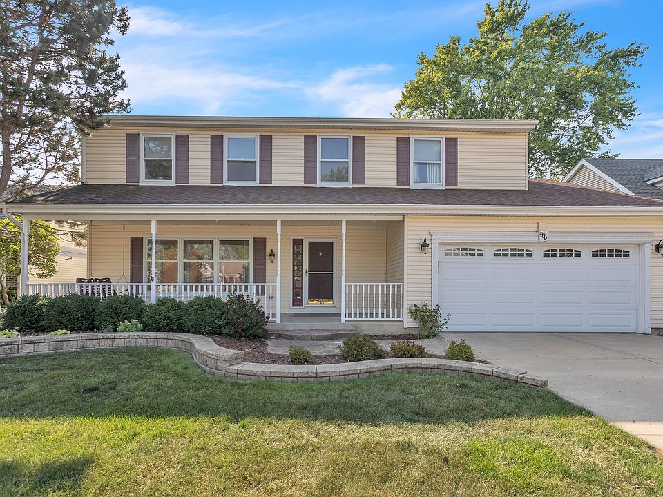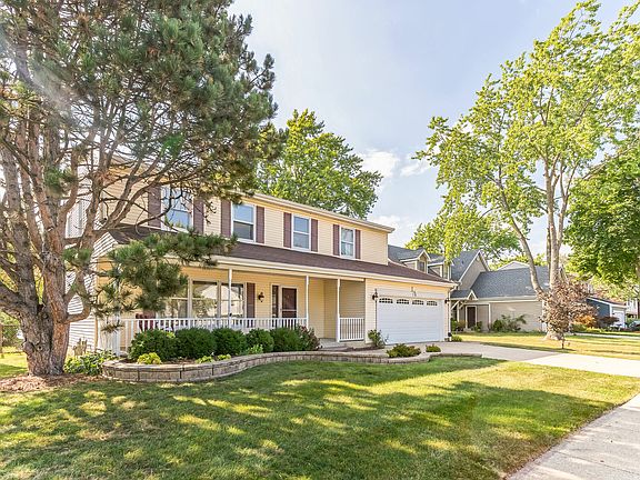 Live the lifestyle you deserve within this beautiful waterfront, Colonial-style home with captivating lake views providing you with peace and serenity! From the moment you arrive your eyes are drawn to the attractive landscaping and welcoming covered front porch with porch swing, which adds to its picture-perfect curb-appeal. This spacious interior was designed with modern living in mind, boasting hardwood flooring throughout the main level. Host countless gatherings within the formal living/dining room and prepare your favorite recipes within the well-designed kitchen; Overlooking the casual dining space and cozy family room with brick fireplace that invites you to unwind in comfort. Upstairs, retreat to the sprawling primary suite with awe-inspiring water views from the window overlooking the lake and a fantastic, walk-in closet with custom designed built-ins. An extra-large second bedroom and two additional bedrooms offer each household member plenty of room to sprawl. Take advantage of the bonus room within the lower level, offering a variety of uses to suit your individual needs. Spend time outdoors within the fully fenced, level backyard with a landscaped perimeter, patio, and those breathtaking views of the lake. Beyond the walls of the home, this neighborhood offers its residents convenient sidewalks, biking trails, parks, and Blackwell Elementary school nearby. Seize the opportunity to make this spectacular house your new home!