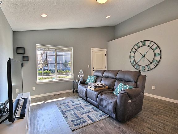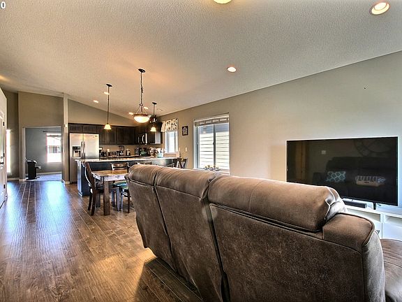 This home features a gourmet kitchen w/stainless steel appliances. Gas range & slab granite counter tops. Shaker cabinets, knotty alder front door, laminate flooring in entry, kitchen/great room. Vaulted ceilings in main living area. Faux wood blinds on windows & tile floors/counters in both bathrooms. Master bath includes jetted tub, walk in shower/double sinks. Finished garage w/full insulation, gas line & utility sink! *agent is related to seller
