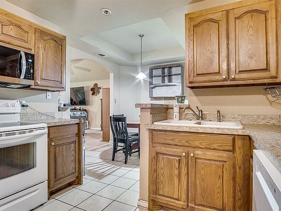 Charming home, within walking distance to Downtown Mineral Wells and all it has to offer! Warm entry to the living area and breakfast nook. The kitchen has a great layout to make cooking a breeze. There is a separate office built out in the garage, completely isolated for those who work from home or use it as a personal retreat. Split primary with tray ceilings, en suite bathroom and large walk in closet. Hall bath includes walk in shower with ample space. 2 other bedrooms offer plenty of natural light and good closet space. A separate storage area attached and offers access to the back yard. Built in shelves currently being installed in living area. Back yard offers , plenty of trees and includes 3 storage buildings.