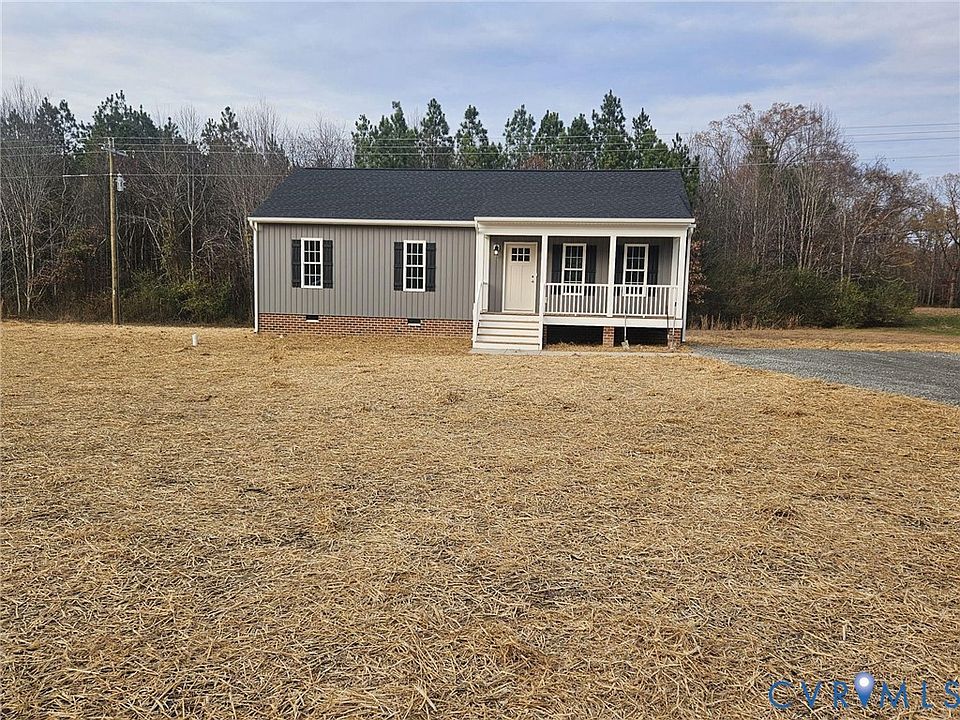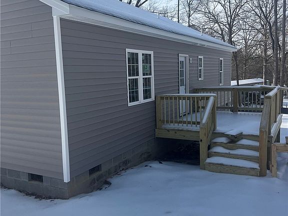 Charming ranch-style home offering modern comfort and serene privacy on 4.08 acres. This inviting property features an open-concept den and kitchen with a cathedral ceiling, creating a bright and spacious living area. The home includes 3 bedrooms, each with ceiling fans, and 2 full baths. The kitchen and bathrooms are outfitted with custom cabinetry, granite countertops in the kitchen, and Venetian marble vanity tops in both bathrooms. Exterior highlights include easy-maintenance premium vinyl siding, a welcoming front porch with vinyl rails, and a 10' x 12' rear deck perfect for relaxing outdoors. There’s still time to personalize your finishes, including kitchen countertop color, vinyl plank flooring, and lighting fixtures. Construction is expected to be completed by the end of March. Interior photos shown are of a similar home previously completed by the builder. Schedule your appointment today to explore this beautiful property.