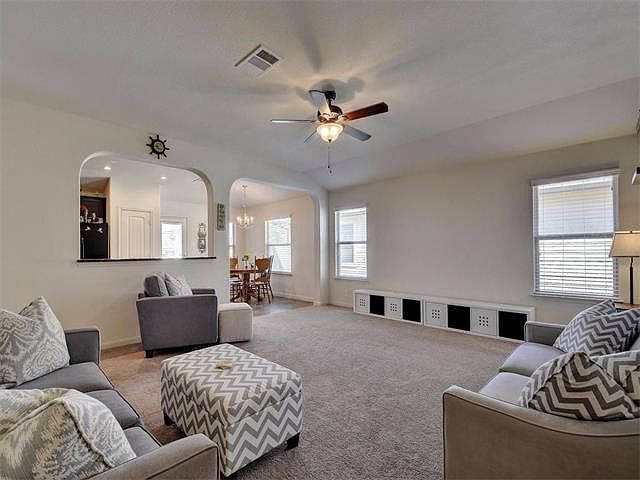 This like-new single story home is clean, & ready for move in! Approaching the home, you are warmly greeted by tasteful landscaping & a welcoming front porch. Entering, you're sure to be impressed by the practical floorplan, complete with a very spacious kitchen that opens up to the large living area. Upgrades include full gutters, granite, under cabinet lights, ceiling fans in all bedrooms, 2" blinds, & country-style doors. The private backyard features a large covered patio, & recently stained fencing.