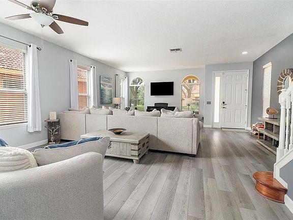Welcome to the kind of Florida escape most people only ever imagine—nestled inside Davenport’s exclusive Watersong Resort, this show-stopping pool home redefines what “dream house” means. Start your mornings on the patio, coffee in hand, and not a care in the world. Here, you’re worlds away from daily grind and tourist crowds, but close enough to hit Disney or Universal on a whim. With 6 en-suite bedrooms, everyone gets their own slice of luxury. The vibrant, tropical landscaping and curb appeal that makes you smile every time you pull in. Step inside, and you’re greeted by soaring spaces designed for making memories. Holidays, birthday dinners, spontaneous gatherings—they all flow effortlessly from the grand living and dining room to the open-concept family space. The kitchen is truly the heart here, and it’s a showpiece: drenched in natural light, gleaming Quartz counters, a butler’s pantry for all your gadgets, and a layout that begs for family feasts and friendly cook-offs. It’s ready for any chef—or anyone who just wants to look like one. Massive sliding glass doors erase the line between indoors and out, letting your living space double in size. Throw open those doors and step onto your screened lanai, where the sparkling pool and oversized deck become your own backyard oasis. No need to track water through the house—there’s a dedicated half bath right by the pool. Whether it’s lazy Sundays, splashy pool parties, or cocktails at sunset, this is where you unwind in style. Upstairs, a generous landing with two cozy seating areas offers perfect spots for curling up with a book or having heart-to-hearts. The primary suite is pure retreat—big, bright, and blissfully private, with a spa bathroom featuring dual vanities, garden tub, and a walk-in shower that feels like a five-star hotel. There’s also a flexible office or sixth bedroom with Jack-and-Jill access, plus four more bedrooms and en-suites—ideal for guests, family, or rentals. The upgrades? They’re a game changer. In 2025: luxury vinyl plank flooring throughout the main level and parts of upstairs, plush new carpet on the stairs, fresh paint, a totally repainted patio and pool deck, stunning new Quartz counters, modern sinks, upgraded door hardware—the works. In 2024: two brand new A/C units, stylish new furniture (some included!), new appliances, upgraded lighting, and enhanced electrical for ceiling fans. It’s move-in ready, beautifully refreshed, and every detail feels brand-new—making it an incredible value at this price. Watersong Resort is more than an address—it’s a lifestyle. Enjoy round-the-clock security, a lavish clubhouse with concierge, state-of-the-art fitness center, games room, and plenty of spaces to gather. Dive into the community pool, play mini-golf, or let the kids loose on the playground and sand volleyball court. It’s the perfect balance of peaceful retreat and resort fun. Nature lovers will love the wooded surroundings, wildlife sightings for long walks. When adventure calls, you’re just minutes from Disney, Universal, & all the best Orlando attractions. Essentials are a breeze with Publix, restaurants, pharmacies, banks, and the Providence Golf Club all nearby. This isn’t just a place to live—it’s a smart investment. Whether you want to move in full-time, create the ultimate vacation spot, or cash in on short-term rental demand, this home delivers. Room, home, and lot sizes are estimated—buyers & agents to confirm all measurements & HOA requirements.
