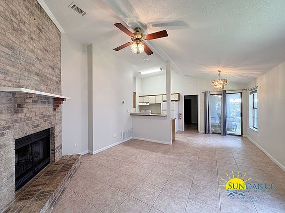 This beautiful, natural light filled 2-bedroom, 2-bath duplex is ideally located in Fort Walton Beach, just minutes from Eglin and Hurlburt Field, as well as top-rated shopping, dining, and entertainment options. Step inside to an inviting open-concept living and dining area featuring stylish tile and LVP flooring throughout. The kitchen is equipped with a breakfast bar, pantry, and essential appliances including a stove/oven, refrigerator, dishwasher, and garbage disposal offering both comfort and convenience. Both spacious bedrooms feature en-suite bathrooms and walk-in closets, providing plenty of privacy and storage. Additional features include washer and dryer hookups, ceiling fans, and driveway parking. Enjoy outdoor living on the covered side patio overlooking the fenced yard perfect for relaxing or entertaining. Landscaping services are included, allowing you to enjoy a low-maintenance lifestyle. Don't miss the opportunity to make this well-maintained home yours! (fireplace is non-functional)