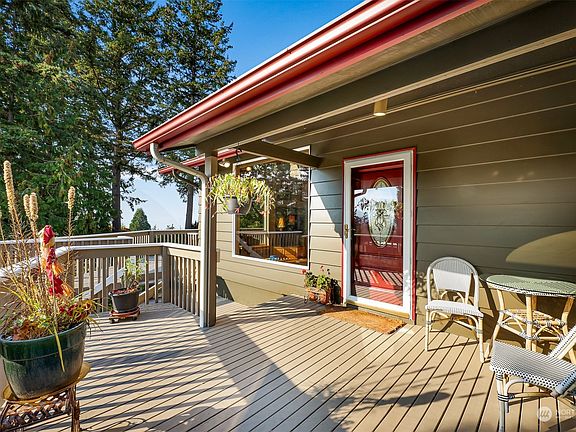 Views, Peace and Serenity! Gorgeous home perfectly placed at highest point on the hill for incredible views on mostly 1 level living. Windows and skylights frame every angle of Olympic Mountains, San Juan Islands, and beautiful Bellingham. Large deck and patio. Generous primary suite with bath and private deck has been converted to separate living area that you can keep that way or utilize in main home. 4th large finished room could be bedroom, workout room, or storage off garage. Magic of privacy in this completely updated home with all new wood floors, stainless steel gas appliances and hot water heater. Close to walking trails for Elite living. Green house and security systems stay. Gardners paradise awaits you in this great community!