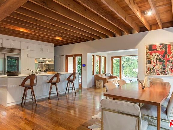 One-of-a-Kind Architectural Hancock Park masterpiece by Clelio Boccato, AIA, a Ray Kappe assoc. Hidden behind privacy gates and lush landscaping this unassuming 3BR & 2.5BA Prairie influenced wood clad 1913 residence has been reimagined into modern interiors reminiscent of a warm creative industrial loft. The grand spiral staircase entry leads you to open concept living offering an intriguing blend of casual sophistication. Exposed wood ceilings with oversized picture windows enhance the sense of spaciousness and celebrate perfect scale in the living, dining and kitchen great room. Chef's kitchen equipped with commercial grade S.S. appliances and over-sized Carrera marble center eat-in island opens to an outdoor deck overlooking the tranquil backyard. Entertainer's backyard paradise includes saltwater pool, spa and outdoor shower off the detached office/pool house. Master bedroom features a walk-in-closet, work out room, on-suite bathroom and outdoor deck.