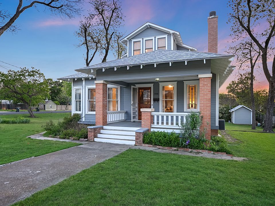Welcome to 508 S Walnut Street! This 100-year-old Craftsman home sits proudly on a generous corner lot in the heart of Historic Georgetown. Seamlessly blending timeless character with modern conveniences, the home features a thoughtfully designed two-story addition that complements the original architecture and expands the living space. Inside, you'll appreciate the fine details and quality craftsmanship—gleaming hardwood floors, rich wood trim, inviting window seats, a preserved fireplace surround, and vibrant stained glass accents. The main level boasts both formal living and dining rooms, ideal for hosting guests, while the spacious family room offers a comfortable setting for everyday relaxation. With 4 well-sized bedrooms and 3 bathrooms, there's plenty of room for privacy and togetherness. Step outside to the expansive covered deck, perfect for sipping morning coffee or hosting lively gatherings. The backyard is a quiet retreat, shaded by mature pecan trees and bordered by flourishing shrubs that enhance both beauty and seclusion. Located just a short stroll from “The Most Beautiful Town Square in Texas,†this home offers convenient access to charming local shops, eateries, and all the history and charm that make Georgetown so special.
