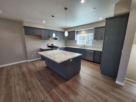 - Quartz countertops, soft close cabinets with lazy susan, island, etc.