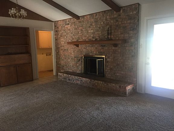 Great back yard area with small pond and large covered patio to enjoy your coffee in the morning or the evening . New carpet in hall and bedrooms and living room, high ceiling with beautiful fireplace with gas. Great neighborhood !! Home is not homesteaded for property tax. Has a large master closet and one bedroom with 2 large closets.