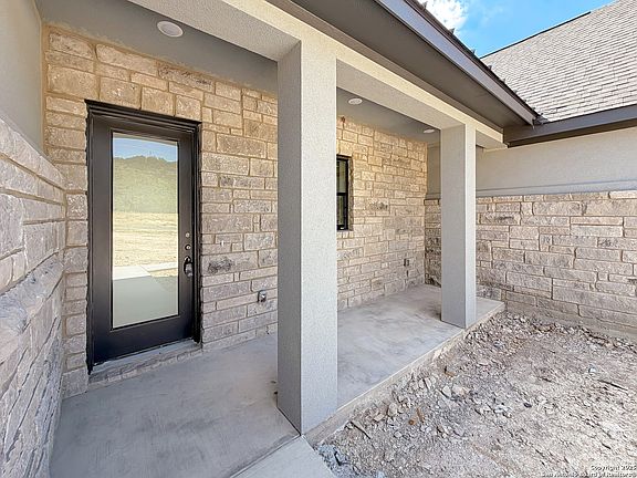 Welcome to your dream home in the brand-new Sendera Vista subdivision, where modern living meets the natural beauty of the Texas Hill Country. This stunning new construction sits on a spacious one-acre lot, offering breathtaking panoramic views that can be enjoyed from both the front and rear covered porches - perfect for peaceful mornings and relaxing evenings. Inside, you'll find an inviting open floor plan highlighted by soaring 11-foot ceilings and stylish, low-maintenance vinyl and laminate flooring throughout. The heart of the home is a beautifully designed kitchen featuring an island with granite countertops, stainless steel appliances, and ample cabinet space, ideal for entertaining or everyday living. The primary bedroom is a true retreat, complete with a luxurious walk-in tiled shower, a double vanity, and a spacious walk-in closet. Secondary bedrooms offer comfort and flexibility for family, guests, or a home office. Additional features include a two-car garage, providing plenty of storage and parking. With no HOA and minimal restrictions, the property offers the freedom to enjoy a country lifestyle, horses and poultry are welcome! Whether you're looking to create a small homestead or simply enjoy wide-open spaces, this home provides the perfect setting. Located just minutes from local dining, shopping, and recreational opportunities, you'll have the best of both worlds, peaceful, scenic living with convenient access to modern amenities. Don't miss the chance to own a beautiful, thoughtfully designed home in one of the most desirable areas. Welcome to Sendera Vista - where your Hill Country lifestyle begins.