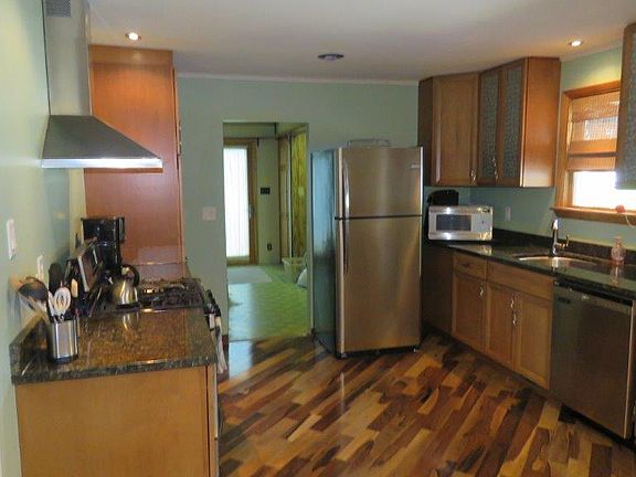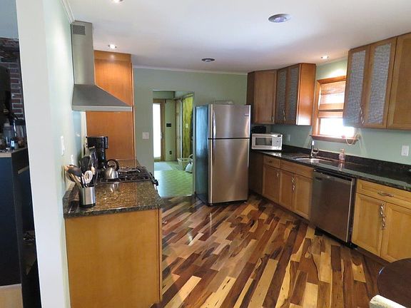 ***MOTIVATED SELLER***HOME WARRANTY***Updated 3 bedroom, 2 full bath home on a quiet cul-de-sac. Complete kitchen remodel in the last two years, including all new appliances that stay, beautiful Brazilian Pecan Hardwood Floor, Granite counter-tops, and soft close cabinets and drawers. The kitchen also boasts custom cabinets that make efficient use of space including pantry pullout, blind-corner unit, and a 2-tier cutlery drawer. All new master bathroom in last two years. Hardwood floors throughout. Wood-burning stove in living room. 200 amp wiring. Furnace new in 2007. On-demand hot water heater, new in 2014. Doors, Siding and Marvin Integrity windows new in last 8 years. Tall crawl space with walk-in door. Extra large 1 1/2 car detached garage. 2 window units that stay with the home. Seller is also offering a $2,000 allowance for central air installation. This home is a must see!