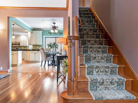 Huge, beautiful lot with big shade trees, next to the Apple River. Offers views of village park, 5 parking spots, large deck, Andersen windows, granite countertops, and 4 bedrooms on 1 level. Custom
