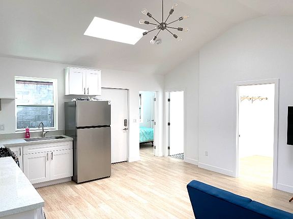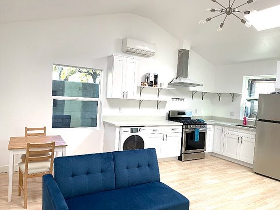Brand new construction, fully furnished (can be unfurnished) 2 bed 1 bath 660 sq. ft. ADU on a quiet tree lined Monrovia street with mountain views. The unit has vaulted ceilings & skylights throughout, plus lots of storage space. The unit has washer/dryer, gas stove, fridge, room fans, plus mini-split system for heat & a/c. Private patio with mountain view and private entry way. Rental fee includes utilities: trash, water, gas, internet/wifi. Street parking included. The unit is above the Royal Oaks trail for walking/biking & leading to many parks, close to 210 freeway. Monrovia is a quaint small town that has close proximity to LA, but still maintains the small town charm. Monrovia has a great schools, shopping, and dining at charming old town featuring numerous sidewalk cafes & restaurants. Monrovia has a Metro rail station that can take you anywhere in LA, and is close to lots of healthcare facilities/Citrus College/APU. 12-month lease, deposit fully refundable upon lease termination.