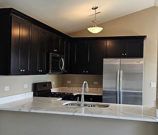 Private entranceCathedral ceilingsStainless steel appliancesExpresso cabinetsEnormous closet space