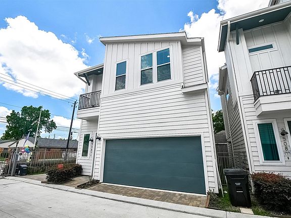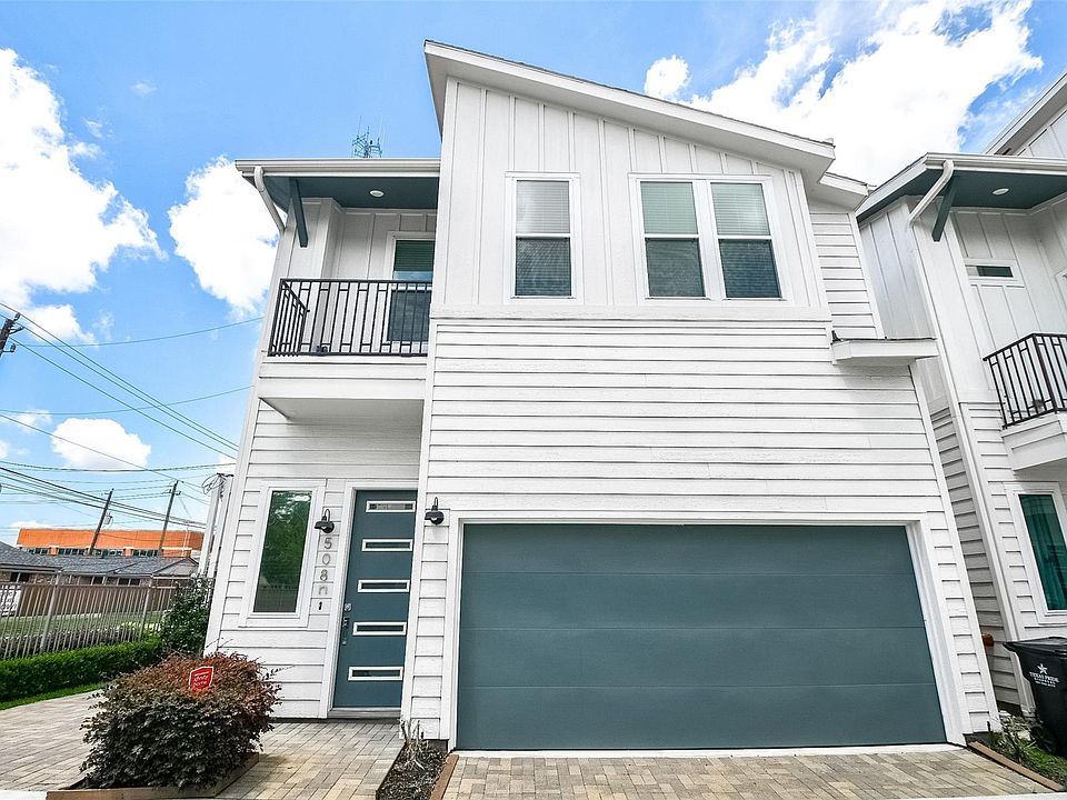 Beautiful and modern, this 2018 constructed property is in a gated community and offers a spacious, open floor plan. Large living and dining combination on the first level, along with a powder room. Kitchen has huge island and quartz countertops. Wood and tile floors downstairs. Primary and two additional spacious bedrooms and two full baths up. Balcony off one of the secondary bedrooms. Corner lot with tons of natural light in all rooms. Smart home with electronic front lock, motion sensitive lights for the stairs and primary closet. NEMA 14-50 power outlet for EV charging in the garage. Community offers a dog park and guest parking. Great location with easy commute to downtown, the Galleria, Medical Center and the airport. Easy quick access to shopping, entertainment and eateries in the Heights and Washington corridor. Water, sewage, trash included. HOA maintains yards. Home is move-in ready and comes with Washer, Dryer, Refrigerator.