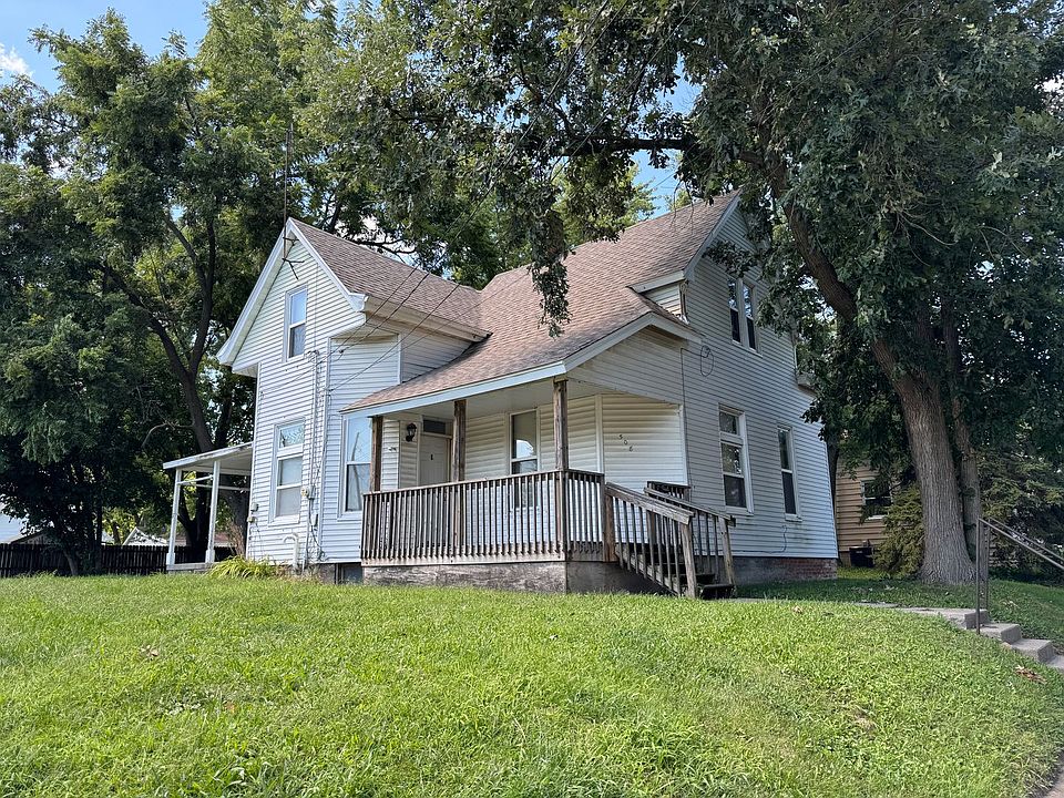 Welcome to this charming 3-bedroom home that blends character with comfort! Step into a spacious living room and dining area filled with natural light, built-in storage, and plenty of closet space. You'll love the mix of beautiful hardwood floors and carpet throughout. The large kitchen offers ample cabinet storageperfect for anyone who loves to cook or entertain. Enjoy relaxing on the covered front or back porches, and retreat to vaulted-ceiling bedrooms that add a touch of elegance. A large unfinished basement provides endless potential for storage or future living space.