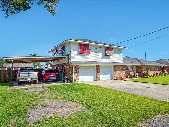 This spacious 4-bedroom, 3-bathroom home offers comfort, style, and flexibility including the option for a primary bedroom on both the first and second floors. Step into the open-concept living area, highlighted by elegant crown molding and newer flooring throughout the kitchen and living spaces. The fully remodeled kitchen boasts granite countertops, modern finishes, and ample space for cooking and entertaining. Newer interior doors add a fresh, updated touch throughout the home. Upstairs bathroom was updated recently. Enjoy outdoor living at its finest with a partially enclosed patio featuring an outdoor kitchen complete with a gas cooktop and sink area, perfect for relaxing or entertaining guests. A whole-home generator provides peace of mind, and the 32 x 22 covered carport next to the garage adds extra parking or workspace. Additional features include a newer roof and located in an X flood zone for added security and savings.