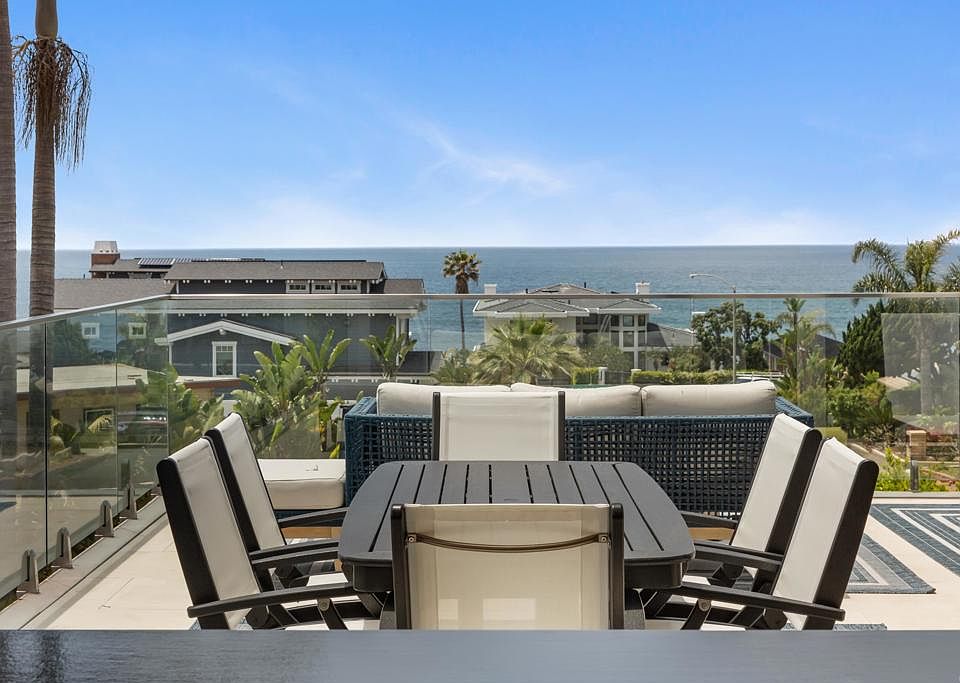 Beach Living at its FINEST! ** FULLY FURNISHED ** Enjoy panoramic Ocean Views with year-round breathtaking sunsets at this gorgeous contemporary showcase. Offering 5 spacious bedrooms, 4 full bathrooms, 3981 sqft **PLUS** nearly 1,700 sqft of outdoor living space! The flawless floor plan incorporates a state-of-the-art kitchen with adjacent dining and living spaces, 3 main level bedrooms including a large guest suite, the upstairs family room opens to an expansive deck with entertainment center and bar overlooking the ocean, an oversized primary suite with stunning ocean views, plus an extra bedroom/office ideal for working from home. A large lot with grassy yard in front and back, above ground SPA, outdoor shower, BBQ station, and available for move-in this September 1st. Access to Terramar's private beach is available with min-6 month lease agreement.