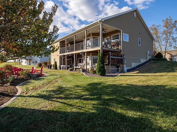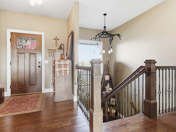 Situated on a beautifully sloping lot overlooking a peaceful valley in Whitetail South, this custom-designed walkout 4 Bedroom, 3 Full Bath Ranch offers the perfect blend of elegance, comfort, and function. The open-concept layout features a gourmet kitchen (appliances only 6 months old) with premium finishes and plenty of space for entertaining, flowing seamlessly into the bright and inviting living areas. The finished walkout basement expands your living space with room for recreation, 2 additional beds, a home office, all with access to the scenic backyard. A three-car garage provides ample parking and storage, complemented by an additional 10x14 detached storage shed with loft for tools or hobbies. The home has high efficiency 6" exterior walls and extra insulation throughout, main floor master has travertine shower with low curb access. Enjoy the serenity of the natural landscape from every angle - this property truly combines luxury living with breathtaking views overlooking the tree lined valley and is located only 6 minutes from Bloomington!