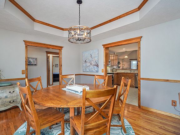 Amazing Family home on nearly HALF ACRE LOT in Cherry Ridge! Great curb appeal, 4000 sq ft m/l, 6 bedrooms, 3 full baths & oversized garage & John Deere Room . Open Great Room with towering ceiling, rich hardwoods & impressive fireplace. Large Chef's kitchen is open to Great Room & boasts plenty of beautiful knotty alder cabinets, lots of counter space, stainless appliances including double oven, breakfast bar, plus formal & living/dining combo. Split bedroom plan w/ 3 bedrooms on main level. Spacious master boasts beautiful hardwoods, tray ceiling, corner jetted tub, gorgeous tiled walk-in shower & walk-in closet. Staircase includes lots of built-in bookshelves too! Spacious walkout basement boasts family room with wet bar & 2nd gas fireplace, plus 3 more bedrooms, full bath & media room (could be converted back to John Deere rm). Huge covered deck above & patio below great for entertaining! HUGE backyard for kids & pets! Hickory Hills & Glendale schools! Call to see this gem today!
