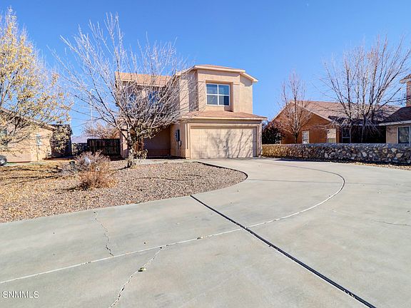 Come check out this well maintained two story 4-bedroom 2.5 bath home. It sits on the corner edge of a cul-de-sac with its backyard views facing the Organ Mountains. This home is move-in-ready upon closing and located in a desirable neighborhood. Living room features fireplace and open floor plan to dining room for entertaining. Kitchen has a breakfast bar, nice size walk-in pantry, tile countertops and stainless-steel appliances. All bedrooms are located on the second floor and 3 of the 4 bedrooms feature large walk-in closets with plenty of storage. You will love the attached balcony to the master bedroom with beautiful views. The back yard features low maintenance landscape with a wooden fence all the way around. The front and back yards both feature a fully functioning sprinkler system. This home is off East hwy 70 and close to Red Hawk golf course, Walmart, Various medical facilities, shopping and restaurants.