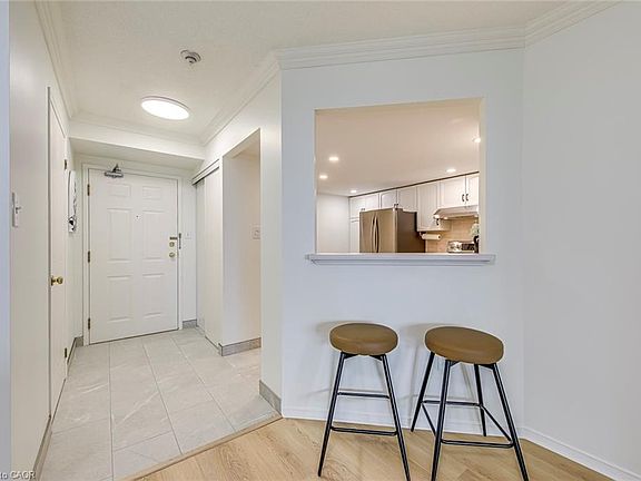 Welcome to one of Burlington’s most sought-after condominium communities, offering exceptional comfort, security, and convenience in a prime location. This beautifully updated 2-bedroom, 2-bath suite features 1,222 sq. ft. of bright, open-concept living space with new flooring, fresh paint, crown moulding, and expansive windows that fill the home with natural light. The spacious living and dining areas access an enclosed balcony with sweeping east-facing views of Lake Ontario and the Burlington skyline, creating the perfect extension of your living space. The bright renovated kitchen offers stainless steel appliances, ample cabinetry, updated hardware, tile flooring, and a clean, functional layout ideal for everyday cooking or entertaining. The generous primary bedroom includes an oversized close, 4-piece ensuite bath, and access to a sunroom that makes an excellent reading nook or home office. A second large bedroom, full bath, in-suite laundry, and two underground parking spaces add comfort and practicality. Residents enjoy an impressive list of amenities including an indoor pool, sauna, exercise room, library, media room, party room, games room, car wash bay, outdoor BBQ area, visitor parking, and beautifully maintained grounds. Condo fees cover building insurance, cable TV, high-speed internet, water, landscaping, snow removal, parking, and all common area facilities. This unbeatable location places you steps to Appleby GO Station, Fortinos, Longo’s, major shopping plazas, restaurants, cafés, medical centres, Bateman Community Centre and Library and the waterfront’s scenic parks and trails, with quick access to the QEW, 403, and 407. Families will appreciate proximity to top-rated schools including Frontenac PS, Pineland (French Immersion), Nelson HS, Ascension CES, and Assumption CSS. A perfect opportunity for downsizers, first-time buyers, or anyone seeking move-in-ready living in a quiet, well-managed community close to every convenience Burlington offers.