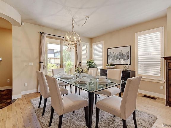 This home is situated on a private pocket park with lush green grass and a gazebo gathering area. The home has classic and timeless finishes throughout, including solid oak flooring, gray-tone cabinetry, and white plantation shutters. The kitchen is open to the living room and dining room and features stainless steel appliances, including a gas cooktop, undercabinet lighting, quartz and slab granite countertops, and a large center island with bar seating. This home has the ideal floor plan with 3 sizable bedrooms and 2 full bathrooms upstairs, plus an open loft that provides valuable work-from-home or family play space. The primary suite is an oasis with mountain views, a vaulted ceiling, a walk-in closet with Elfa built-ins, and a 5-piece en-suite bathroom featuring a Euro-glass shower surround, quartz countertops, and a deep soaking tub. The basement in this home has been fully finished and is complete with a movie theater, 4th bedroom, 4th bathroom, and 3 egress windows for tons of light. The home is situated on a lot that lives large with a fully fenced front yard landscaped with gardens and a welcoming covered front porch. The backyard has low-maintenance turf complete with a golf putting hole and an extended paver patio. There is an attached two-car garage for plenty of space for vehicles and gear storage. Additional features include a new roof, new exterior paint, and new window treatments. It's move-in ready and ready to go!