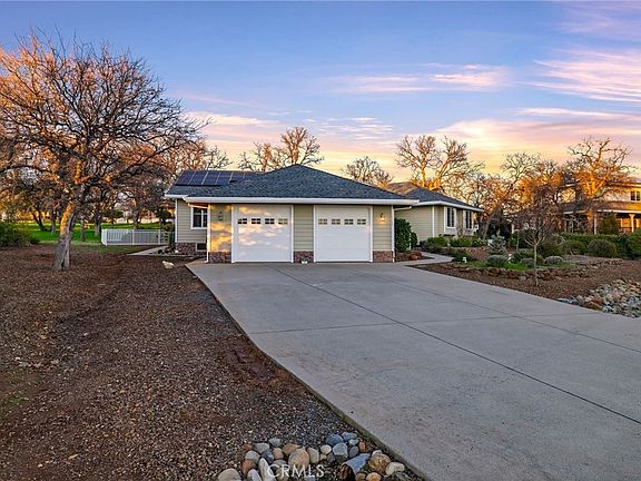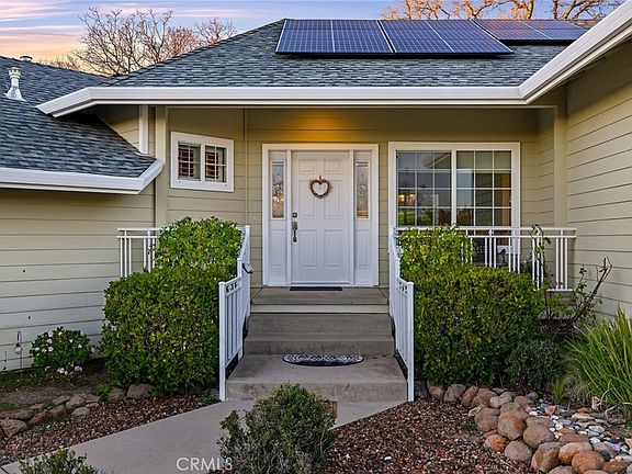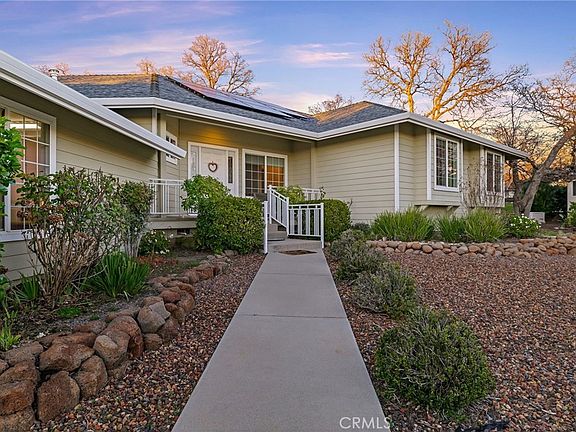 Welcome to Mountain Oaks Estates! This gated community provides sweeping views of the central valley, dramatic sunsets and is located just moments away from Lime Saddle Marina. Aside from the picturesque country setting, the neighborhood streets are lined with well maintained custom built homes. Covered porch, 32 panel OWNED solar system plus mature landscaping creates an incredible first impression when arriving at the home. Stepping into the 2313 square feet of living space, you are greeted with natural light, tile floors and a custom floor plan perfect for entertaining friends and family. The custom kitchen offers hardwood cabinetry, granite tile countertops and stainless steel appliances. Recent upgrades in the kitchen include a new dishwasher, refrigerator and Culligan reverse osmosis drinking tap. Just beyond the kitchen, a cozy breakfast nook is the perfect place to start your day while sitting next to the gas fireplace. Beyond the nook, which is currently used for formal dining, the new owner has the opportunity to transform the space to suit their families needs. As the day dies down, retreat back to the opposite end of the home. The expansive primary suite implies relaxation and is finished with a jacuzzi tub, custom tile shower and a walk-in closet. Beyond the laundry room you will find the two additional bedrooms and guest bath. While touring the home pay close attention to the mechanical upgrades. Culligan water filtration system, new tankless water heater, thermostat operated attic fans, and a 2023 installed new HVAC system!