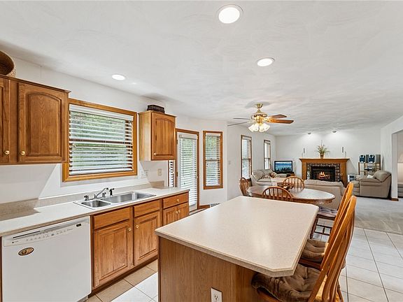 Welcome to this stunning custom-built home offering an inviting open floor plan perfect for everyday living and entertaining. A full front porch sets the tone, leading into a dramatic 2-story foyer, huge formal dining room and spacious family room warmed by a cozy fireplace. The fully equipped kitchen boasts an island, pantry & breakfast nook with a walk out bay leading to a 25' x 12' concrete patio overlooking the private backyard. Convenient first-floor laundry with closet and cabinetry is located just off the kitchen. The primary suite impresses with soaring cathedral ceilings, a walk-in closet & bath w/ whirlpool tub & skylight, while three additional bedrooms provide generous space. The lower level offers abundant storage with potential for future living space. This home is in excellent condition, the attention to careful maintenance highlights the pride of ownership. Located in a highly desirable neighborhood that features its own park, this home blends comfort, style & community