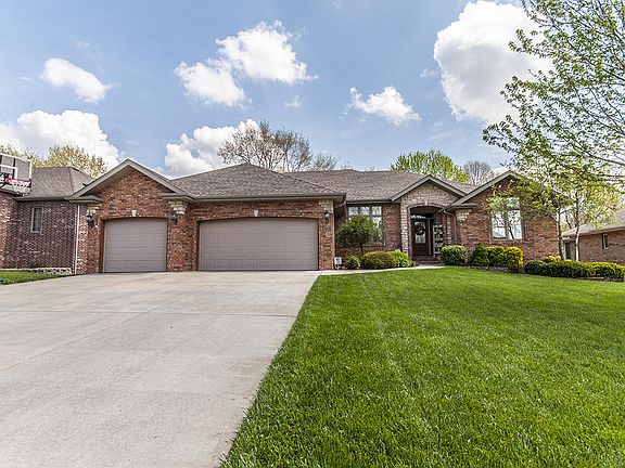 This beautiful all brick walkout basement home in Kickapoo Schools, features an open floor plan with hardwood flooring, formal dining, gas fireplace, granite countertops, stainless appliances and custom cabinets. Split plan has 3 bedrooms, including a huge master suite, on the main level. Basement provides 2 bedrooms, 2 baths, large family room with a gas fireplace, wet bar, storage room, storm shelter and a John Deere room. Fenced backyard with mature landscaping, covered deck and patio, an amazing space for entertaining! Call today before it's gone!