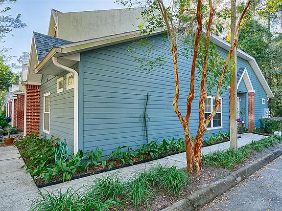 Under contract-accepting backup offers. Come enjoy living in a very convenient location in this well-maintained end unit home. As you walk in the hard wood floors are beautiful and comfortable that span throughout the living space. The open kitchen with stainless appliances, expansive counter space will allow you to come home to cook great meals for everyone. The living space is large for your furniture and big TV! The split floor plan gives everyone space and privacy. The big main bedroom has walk in closet, nice, updated vanity in bathroom with walk in shower with glass style subway tiled walls and glass door. The guest bedroom is good size for friends and family to enjoy. Hall bathroom has updated vanity and tub/shower combo. This home backs to a serene, wooded space that creates privacy along with peace and quiet. Almost as nice as the home, the location is tough to beat being walking distance to Gainesville Health and Fitness Center, a short bike ride to UF and close to North Florida Regional Hospital and I-75. AC is 2024, roof on whole building in 2024, hot water heater is 2025. The neighborhood is great for walking with a nice pool to enjoy and a pond to relax by. Great home, great neighborhood and location, what else do you need!