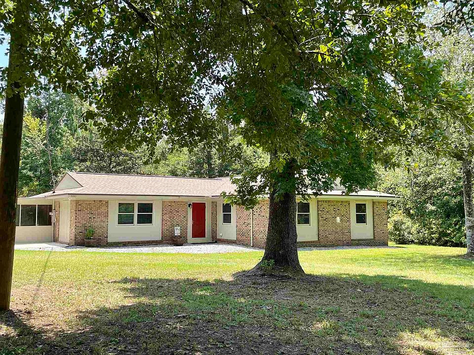Have you ever wanted to be immersed in nature but still close to conveniences? This is YOUR answer!!! Don't pay attention to the original build date. This beautiful super clean and well kept home has been completely updated and remodeled and is surrounded by almost 5.5 acres of woods, grass, azalea bushes, blueberry bushes, persimmons, a CREEK, beautiful oak trees and more. There is a large family room that connects to a huge kitchen via a bar top. The kitchen has tons of cabinets with pull outs, a spice rack, two lazy Susan's and soft close drawers. It's also open to a casual eating area that includes a built-in buffet/storage. The "game room" is open to the casual dining area and could be easily used as a formal dining room. The original house had three bedrooms. The third bedroom and primary bedroom were combined to allow a private extra room for multi purposes (like a study, a nursery, a media room or a hobby room.) It could be converted back into a traditional third bedroom. When you enter through the screened porch, you will find another multi purpose area that includes a laundry closet with plenty of storage and a second bathroom that was added during the original renovation. In addition to the home, it includes a 12x24 workshop storage with electricity and water, TWO wells (one for potable water and one for irrigation.), a screened porch that connects to the covered parking, a huge garden area with two open sheds and plenty of space for a chicken coop. Please see attached documents for more details. HVAC is geothermal with coil condenser replaced in 2023. Roof: 2016. Water Heater: 2021. Insurance currently $2600/yr. Attic insulation is Icynene! NO COST for utilities except electricity.
