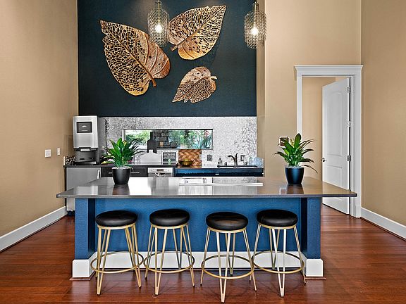 - Exterior features: , 9- or 10-foot ceilings, Basketball Court, Building-wide Wireless, Business Center, Contemporary wood cabinets in kitchens and baths, Decorative crown molding, Electronic parcel locker system, Game Room, Garages, Granite countertops in kitchens, Kitchen islands*, Pet Park, Private patios or balconies, Putting green, TV Lounge, Wood-style flooring in kitchen and baths